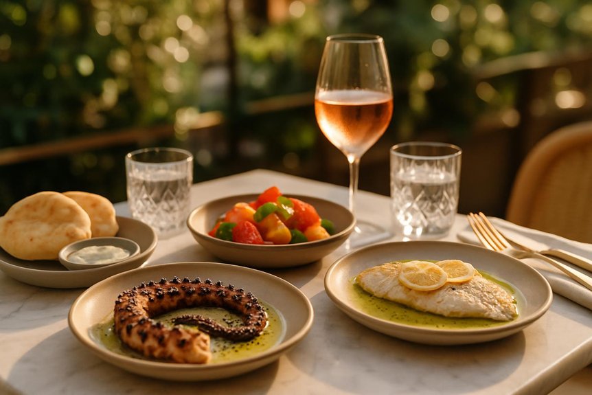 Dishes balance richness with acidity, inviting a thoughtful wine pairing or a zero-proof alternative.