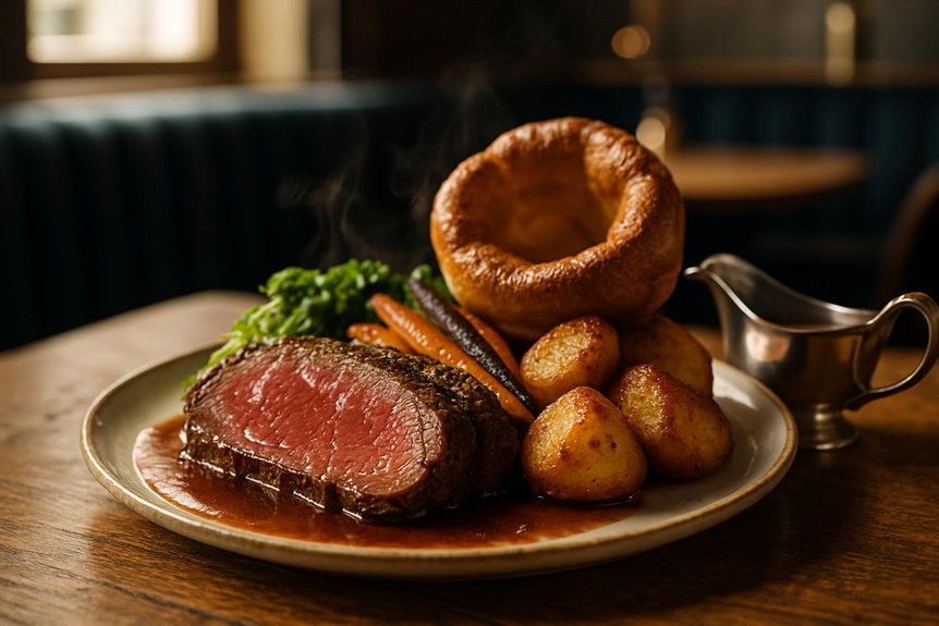 Traditionalists find precision in blush roast beef, crisp potatoes, glossy gravy, and seasonal greens, composed with attention to timing and texture. Yorkshire puddings stand tall, acting as vessels rather than garnish.